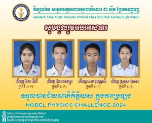 សូមអបអរសាទរសិស្សនៃNGS.PA ចំនួន៤រូប ទទួលបានជ័យលាភីកិត្តិយស ក្នុងការប្រឡង NOBEL PHYSICS CHALLENGE 2024។ ថ្ងៃទី 21 ឧសភា 2024 admin សូមអបអរសាទរសិស្សនៃNGS.PA ចំនួន៤រូប ទទួលបានជ័យលាភីកិត្តិយស ក្នុងការប្រឡង NOBEL PHYSICS CHALLENGE 2024។ Comments