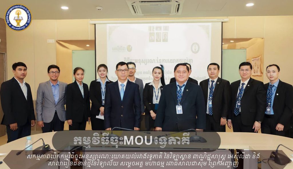 ពិធីចុះអនុស្សរណៈនៃការយោគយល់គ្នាស្ដីពីកិច្ចសហប្រតិបត្តិការ លើការផ្សព្វផ្សាយសេវាអប់រំ និងផ្ដល់អត្ថប្រយោជន៍ដល់សិស្ស-និសិ្សតរវាងសាកលវិទ្យាល័យ ពាណិជ្ជសាស្រ្ត អេស៊ីលីដា និងវិទ្យាល័យ សម្តេចអគ្គមហាធម្មពោធិសាល ជាស៊ីម ព្រែកអញ្ចាញ សាលារៀនជំនាន់ថ្មី នាថ្ងៃទី ១៥ ខែកុម្ភៈ ឆ្នាំ២០២៤។